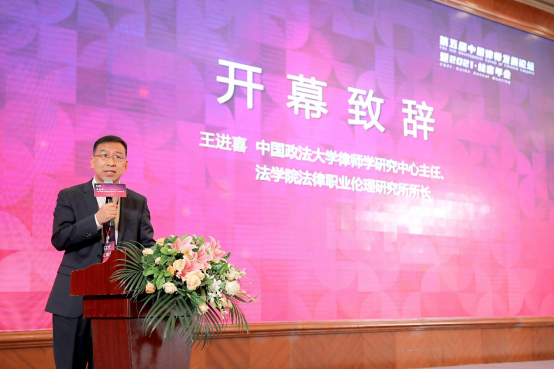 王进喜教授在论坛开幕式上致辞,并随后在开幕演讲中以“我和我们的《律师法》”为题发言。王进喜教授结合当前我国律师行业飞速发展的实际,指出了《律师法》颁布以来对促进律师行业发展发挥的重要作用,以及目前律师法实施面临的问题,并提出了进一步修改完善的意见。