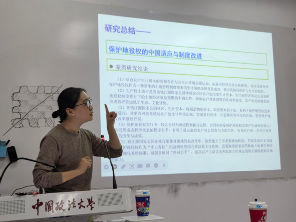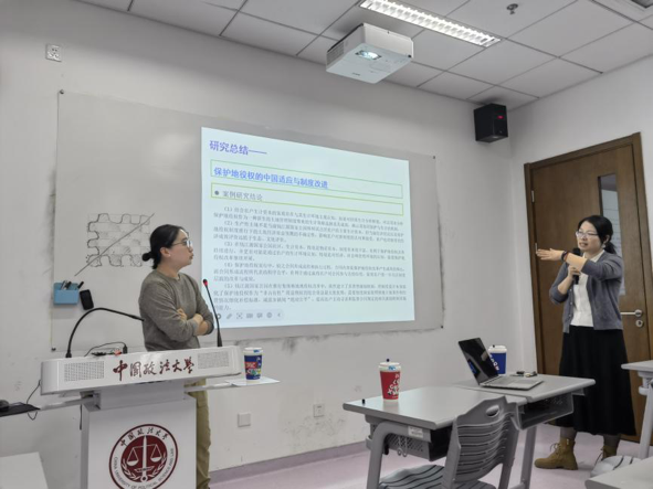 同学们向两位老师请教了保护地役权制度最优的适用场景、保护地役权协议的补偿问题等,何思源老师与魏钰老师进行了深入的解答。马允老师鼓励同学们从交叉学科的视角看待和分析保护地役权制度,并加强实证研究方法的科学训练。