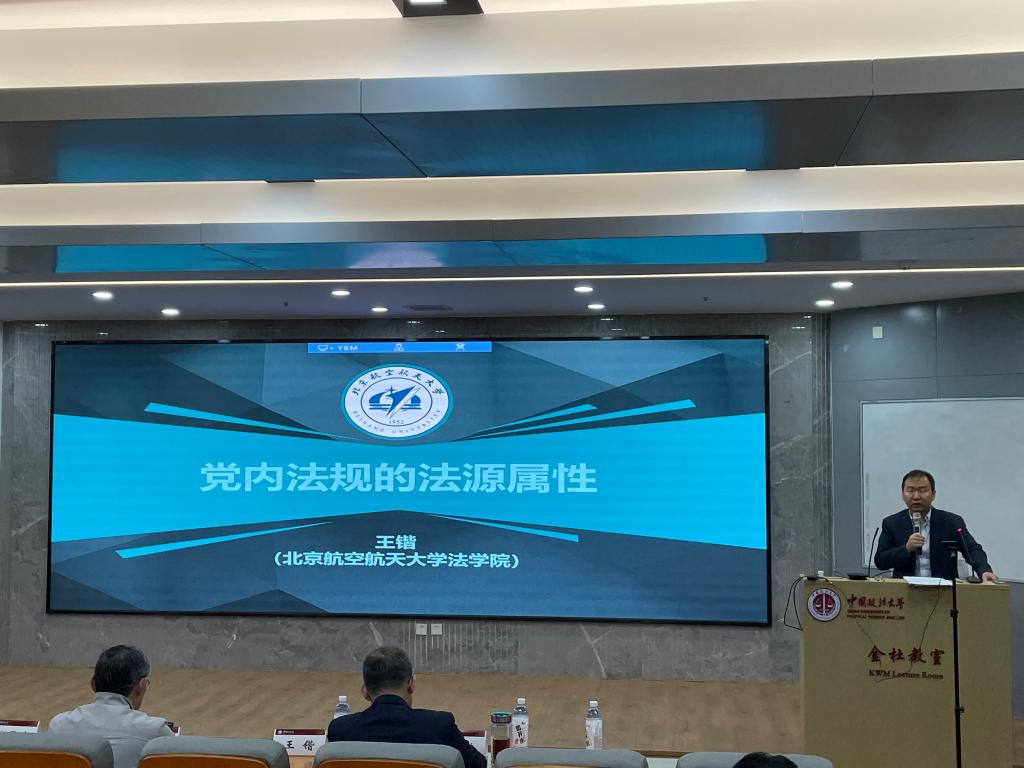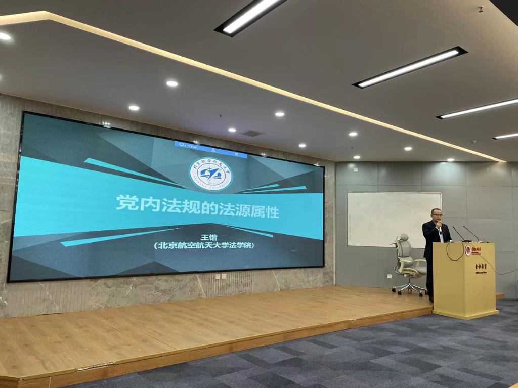 本次讲坛邀请了北京航空航天大学beat365中国官方网站王锴教授,以“党内法规的法源属性”为主题发表学术报告。讲座由党内法规研究所所长张劲副教授主持,beat365中国官方网站李树忠教授、姚国建教授、赵雪纲副教授、赵海全老师等多位老师参与了学术交流,还有近五十名名博士和硕士研究生参与了本次讲座。