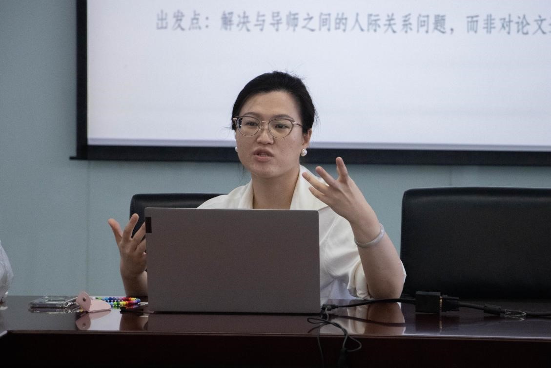 活动伊始,肖彤从学校和学制两方面分别对法国公立大学法学教育展开详细介绍。她结合法国公立大学的发展历史,解释了公立大学国家性较强、自治权取得较晚的原因,并表示由于传统的深刻影响,大学中各学院的独立性、自主性较强。随后,她从法国公立大学的现状出发,展示了公立大学以合并为主的变革趋势,并对其未来的发展方向提出自己的见解。此外,肖彤从本科、硕士、博士三个阶段对学制展开介绍。她分析了法国法学本科教育在录取标准、淘汰率、课程构成三个方面的特点,并详细介绍了本科课程中讲授课与辅导课相结合的体系。同时,肖彤结合个人留学经历,分别介绍了法国硕士阶段极具特色的“M1 M2”的培养方式和博士生阶段的导师制。她表示导师在博士生培养中发挥重要作用,为了缓和博士生与其导师的关系,法国公立大学正在进行“追踪委员会”的改革。