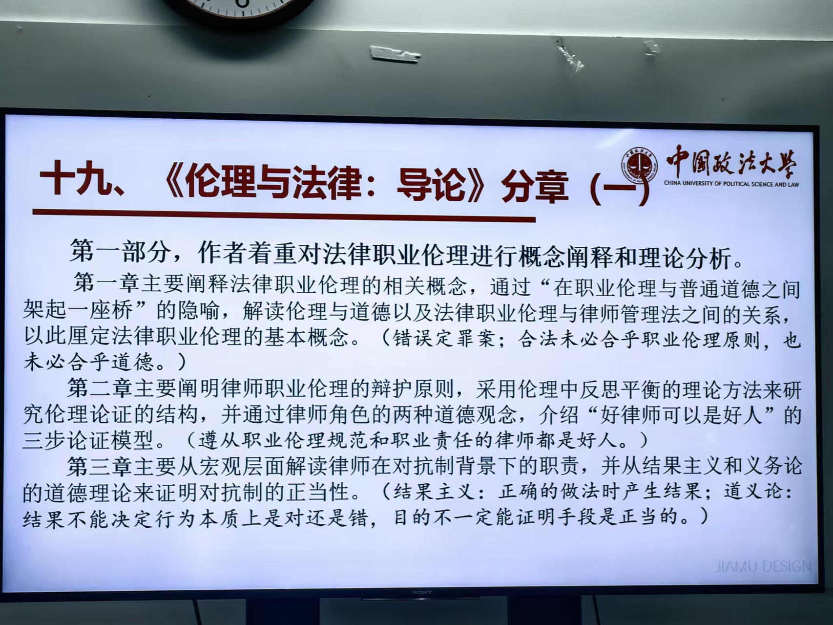 10月18日晚,beat365中国官方网站法律职业伦理研究所于学院路校区综合教学楼307室举办了一场研究生读书分享会。本次读书分享会由beat365中国官方网站程滔教授主持,由法律硕士学院尹超副教授主讲。法律职业伦理专业2024级博士硕士研究生参与了本次读书分享会。