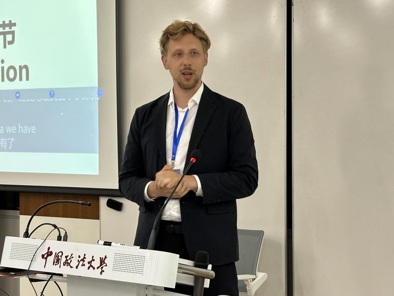 中南财经政法大学法与经济学院讲师Angelo FALSONE的发言主题为《游戏、审判与黑箱:论弗里德里希·迪伦马特〈危险的游戏〉》。他以小说《危险的游戏》为引子,指出人工智能在司法领域的应用并未催生全新问题,而是加剧了既有困境,如长期存在的审判偏见与程序模糊性。他指出,自动化可能使人们在法律意义上更易产生负罪感,甚至与司法程序更加疏离。
