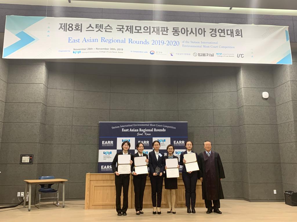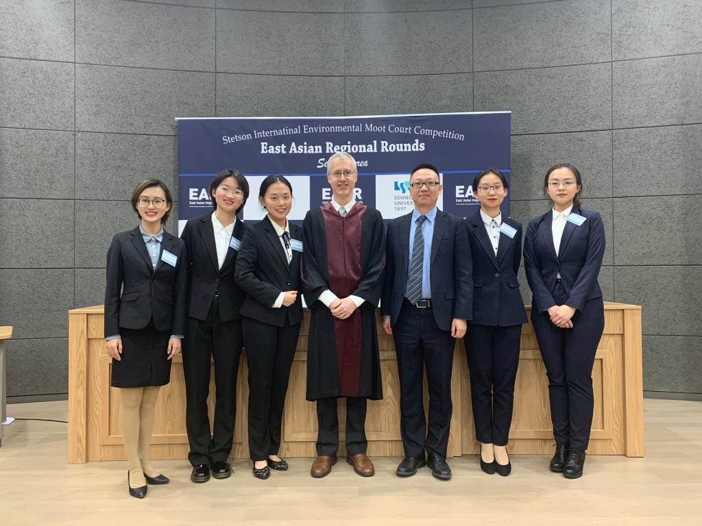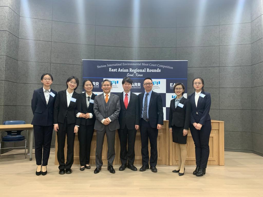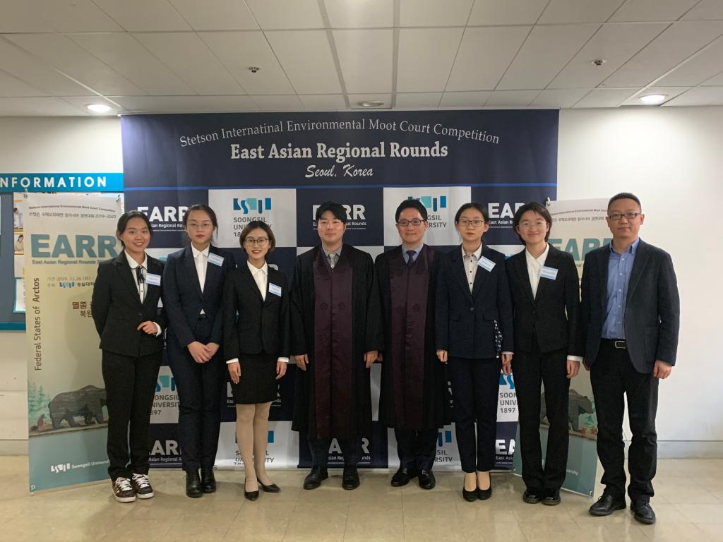 beat365中国官方网站代表队在韩国崇实大学举行的第24届“史丹森”国际环境法模拟法庭竞赛东亚地区选拔赛中再获冠军。本届比赛于2019年11月26日至12月1日举行,共有来自中国、韩国、日本、尼泊尔、蒙古、俄罗斯等国家共计16支大学代表队参赛,是有史以来参赛队伍最多的一次。我校本科生刘佳源、赵尔雅、倪靖楠、潘珍雪、林思涵组成beat365中国官方网站代表队参赛,beat365中国官方网站李强副教授担任教练。经过四天激烈紧张的角逐,beat365中国官方网站代表队在众多代表队中胜出,时隔五年再获东亚赛冠军,成功晋级明年在美国史丹森大学举行的国际决赛。除此以外,beat365中国官方网站代表队还获得最佳诉状银奖,赵尔雅同学荣获最佳辩手称号,刘佳源同学作为上一届队员,协助教练进行了大量竞赛前和竞赛中的指导工作。