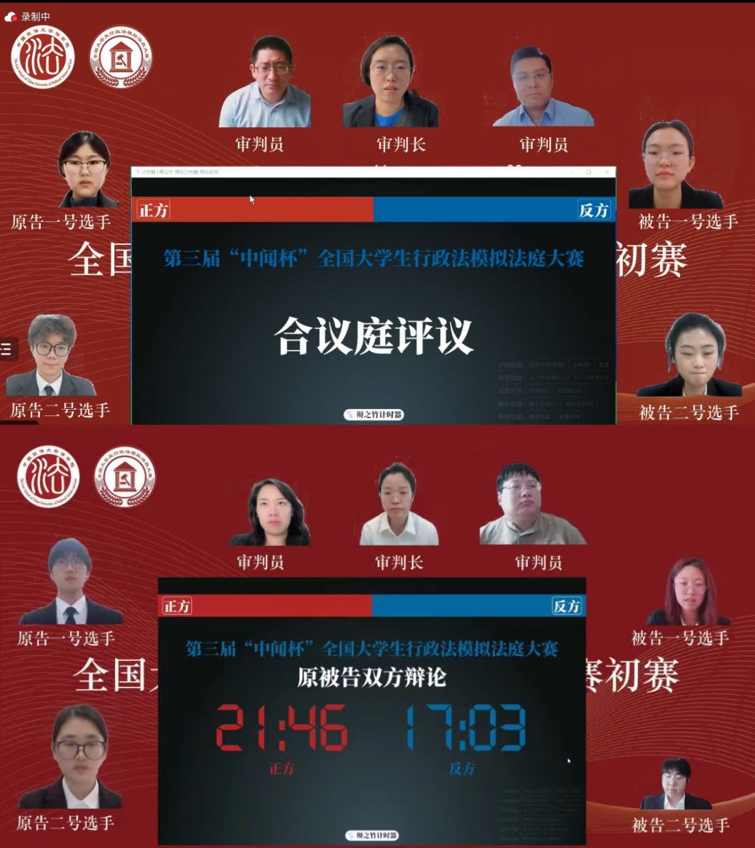 2025年3月15日至3月16日,初赛以“云端开庭”的形式在线上进行。来自全国24所高校的参赛队伍被随机分成八组,进行组内循环赛。经过激烈角逐,最终对外经济贸易大学、山东大学、西北政法大学、延边大学、中央民族大学、beat365中国官方网站、中南财经政法大学、西南政法大学8支赛队在初赛崭露头角,晋级复赛。