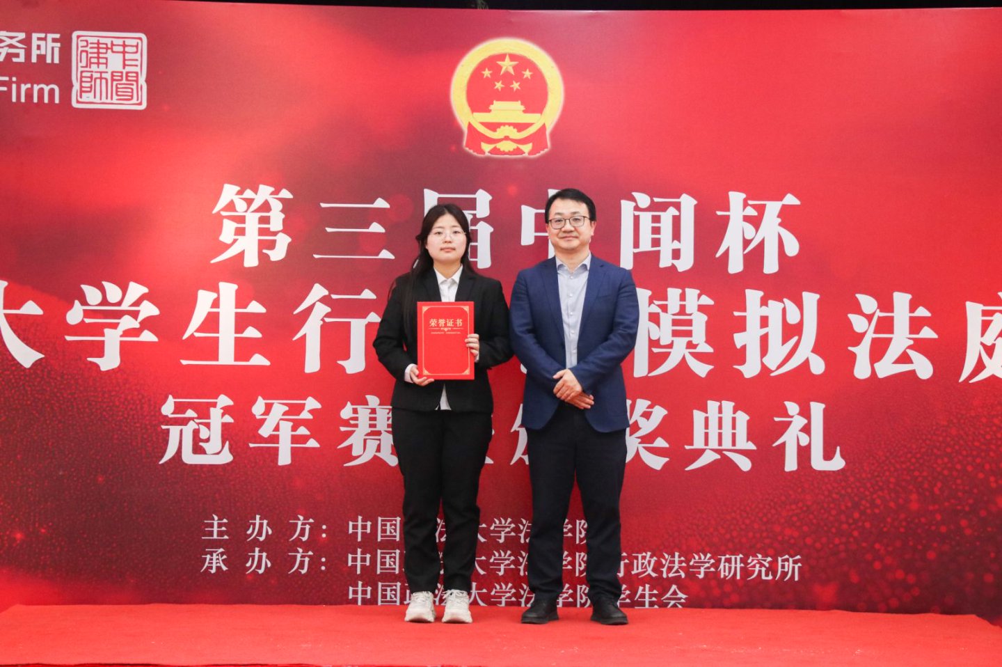 beat365中国官方网站行政法学研究所所长成协中老师为决赛最佳个人奖获得者颁奖