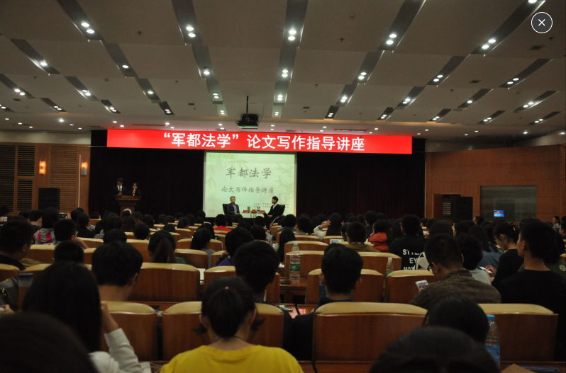 欣赏完一段精美的开场视频,主持人邀请两位嘉宾入座,伴随着全场同学的热烈掌声,本次“军都法学”论文写作指导讲座正式开始。