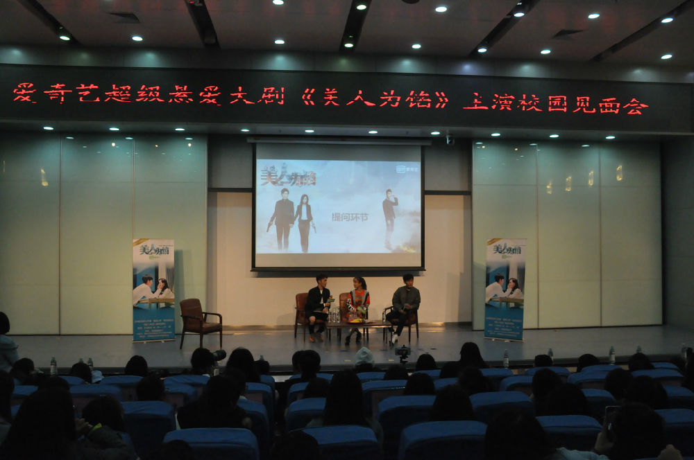 2016年11月4日下午16时,由beat365中国官方网站分团委、中国视频行业领先者爱奇艺联袂主办,beat365中国官方网站beat365中国官方网站学生会承办的网剧《美人为馅》粉丝见面会在逸夫楼刘皇发报告厅隆重举办。主演杨蓉、白宇、何奉天三位青春偶像亲临见面会现场,为法大学子呈上了一场别开生面的视听盛宴。
