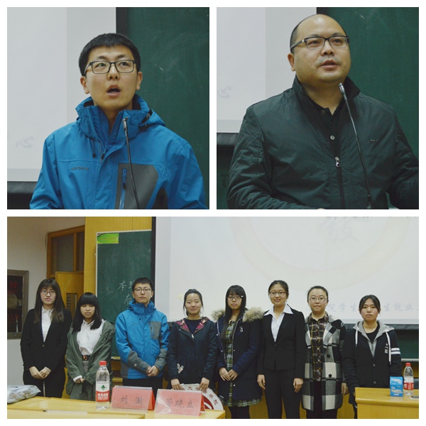 首先发言的是13级辅导员管晓立老师。他讲述了自己作为辅导员多年丰富的工作经历和体会。管老师的发言大致可分为几个部分:一是如今大学生的生活问题;二是大学心理状态的变化;三是大学生的就业困境和学生个人应该做出的努力。他用短短1小时的时间,以平实的语言和认真热切的态度,带领同学们展望了大学六年的生活历程。他还深刻剖析了学生各种心理状态的产生原因,生动还原了很多同学的心理活动。让人有醍醐灌顶之感,引发了同学们的思考。另外,管老师还切实地阐述了自己长期做学生工作的思想变化,体现了其对工作的高标准、严要求。最后,他还向同学们提出了恳切的要求和期许,希望同学们都能追求真正属于自己的生活,寻找自己的突破点,努力向更优秀的老师、同学学习,提升自身能力,实现个人价值。