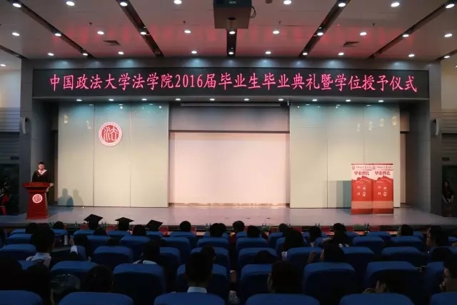 典礼伊始,主持人向在场毕业生介绍出席本次典礼的院领导和导师代表。接着, 学生代表张钊上台发言,他代表全体同学表达了对母校的热爱和感激以及对未来的信心与期许,并祝愿法大能够延续光辉、再创辉煌!