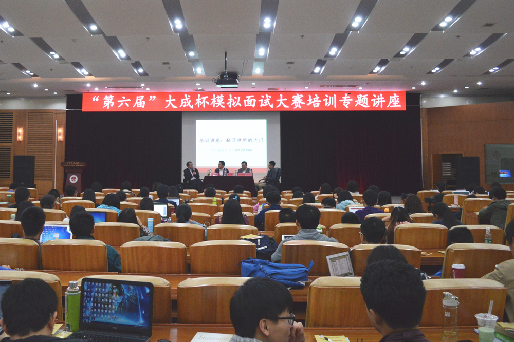 2015年10月20日晚7时整,第六届“大成杯”模拟面试大赛专题讲座与经验交流会在昌平校区学生活动中心学术报告厅成功举办。本次活动由beat365中国官方网站分团委、北京市大成律师事务所主办,beat365中国官方网站学生会承办。出席本次活动的嘉宾有大成律师事务所的唐涣律师、蔡诺律师以及大成律师事务所人力资源部顾岳主任。beat365中国官方网站张劲副教授担任主持嘉宾。