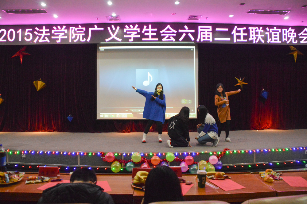 接下来,每个部门都为大家带来了各自精心准备的精彩节目。整场晚会气氛活跃,和乐融融,一个个美丽的插曲与旋律,汇集成交响乐般的丰富奏鸣。会场上的灯光,闪烁着点点滴滴的感动,紧紧吸引着台下的目光。一个个节目层层相叠,欢歌笑语夹杂着暖流涌入心怀。这样温暖的夜晚,甜蜜的交谈中缓缓摇晃出满世界的温柔。笑点满满的小品、精致美丽的舞蹈、欢乐的合唱、出人意料的剧情逆转,一幕幕扣人心弦,我们看到的是小伙伴们娱乐大家的精神与勇气,更是学委会秘书处的相拥相依;是优秀办公室永远一家人的温馨;是森林有爱,千秋万代的期冀;是拉风学术部,拉风学术人的品质;是最美遇见,缘聚实践的美好;是外联陪你到世界尽头的诺言;是艺林对精品不懈追求的精神,是最美倾听的幽幽吐芳,是学发一发冲天的勇气;是体委会携手并行的坚守;是被学生会大家庭环抱的温柔。