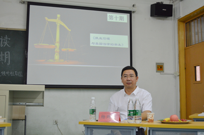 主持人作了简单的开场后,读书会正式开始。首先,赵雪纲老师就本书谈了几点他的看法。他指出法律伦理与做人的伦理的关系问题是本书探讨的一个重要问题,两者关系是密不可分的,职业伦理是做人的伦理的一部分。他还列举了自己的经历告诉同学们,现实生活中职业伦理与做人的伦理的冲突是时刻存在的,如何解决二者的冲突仍是我们必须研究的命题。随后,杨兴权律师与大家分享了他的读书感悟。他提到,中国古代“礼”与“法”是紧密结合的,但现代的中国“礼”与“法”却是分离的,这可能是中国法律职业伦理问题突出的一个原因。而国外的许多法律都来源于圣经,因此在国外的许多国家圣经对法律从业者多多少少会有约束作用,这在某种程度上会解决部分职业伦理问题。