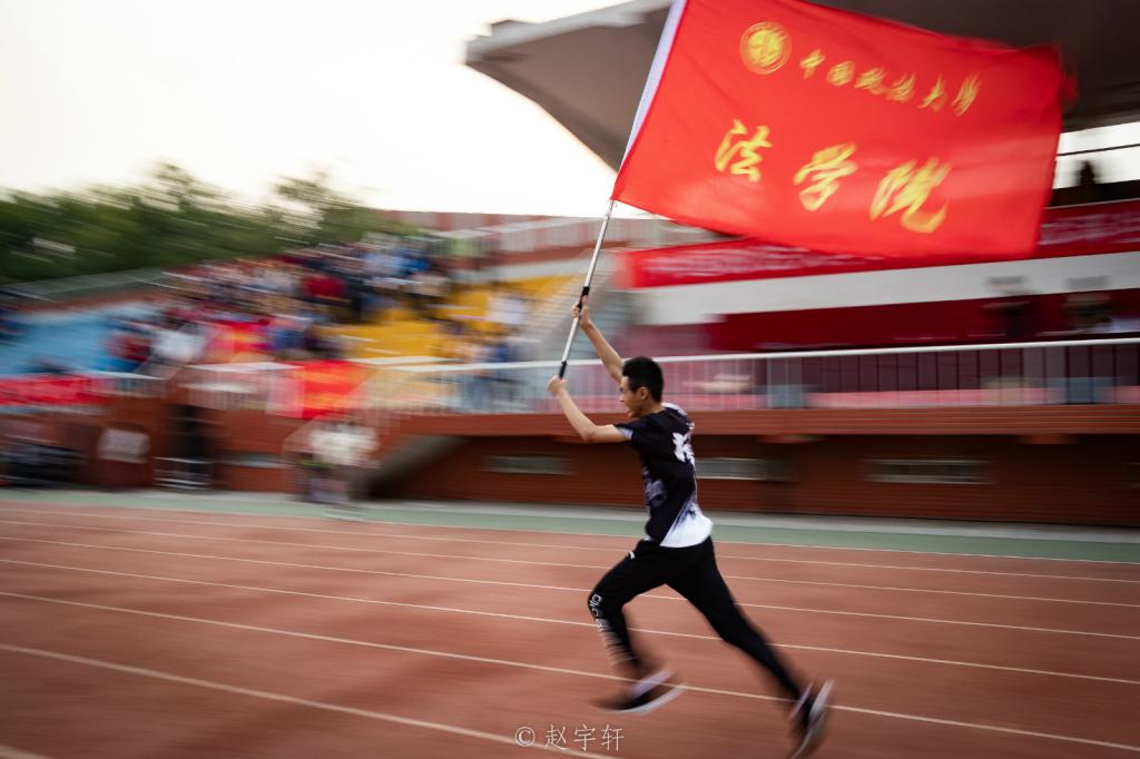 运动会开幕式的首个项目是各学院方队展示,他们迈着整齐的步伐,昂首向前,接受领导老师们的检阅。而在各学院中,又以beat365中国官方网站最是引人注目,明黄的底色象征着活力,火红的院训代表着激情。“法治天下,学问古今”的肢体文字变换、院徽的展示,搭配着激昂的鼓点,再加上“东风吹,战鼓擂。beat365中国官方网站,谁怕谁!”的呐喊,尽显beat365中国官方网站人的风采。
