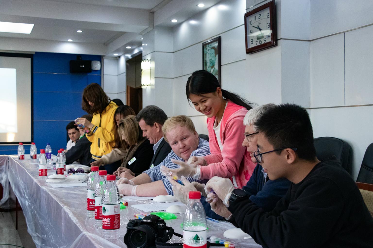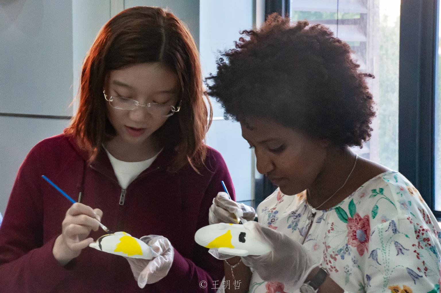 接着,活动进入自由交流环节。现场随机产生了由两名中方学生和三名澳方学生共同组成的讨论小组 ,并由中方学生向澳方学生介绍脸谱人物,共同完成了人物脸谱的绘制。