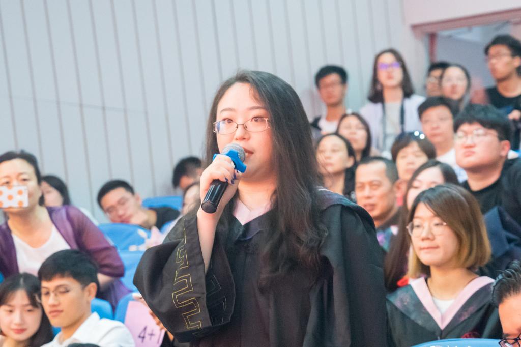 在场的毕业生对老师们表示感谢,并一同合唱《再见》,现场氛围热烈,令人动容。最后的学位授予仪式上,毕业生们依次上台接受老师们的拨穗授予,并与老师合影留念。