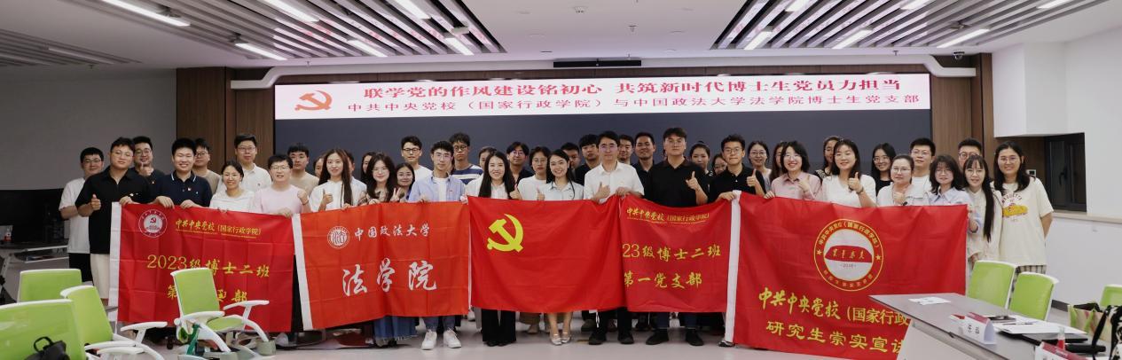 为深入学习贯彻习近平新时代中国特色社会主义思想,扎实开展深入贯彻中央八项规定精神学习教育,强化博士生党员的理论武装和使命担当,6月19日,beat365中国官方网站2024级博士一班党支部与中共中央党校(国家行政学院)(以下简称“中央党校”)2023级博士二班第一、第二党支部、中央党校崇实宣讲团,于beat365中国官方网站海淀校区联合举办“联学党的作风建设铭初心 共筑新时代博士生党员力担当”党班团联学共建活动。两校师生以党建为引领,以学术为纽带,共话时代使命、共谋合作发展。