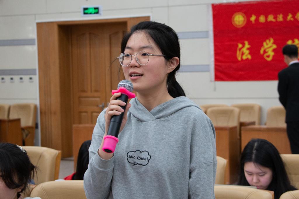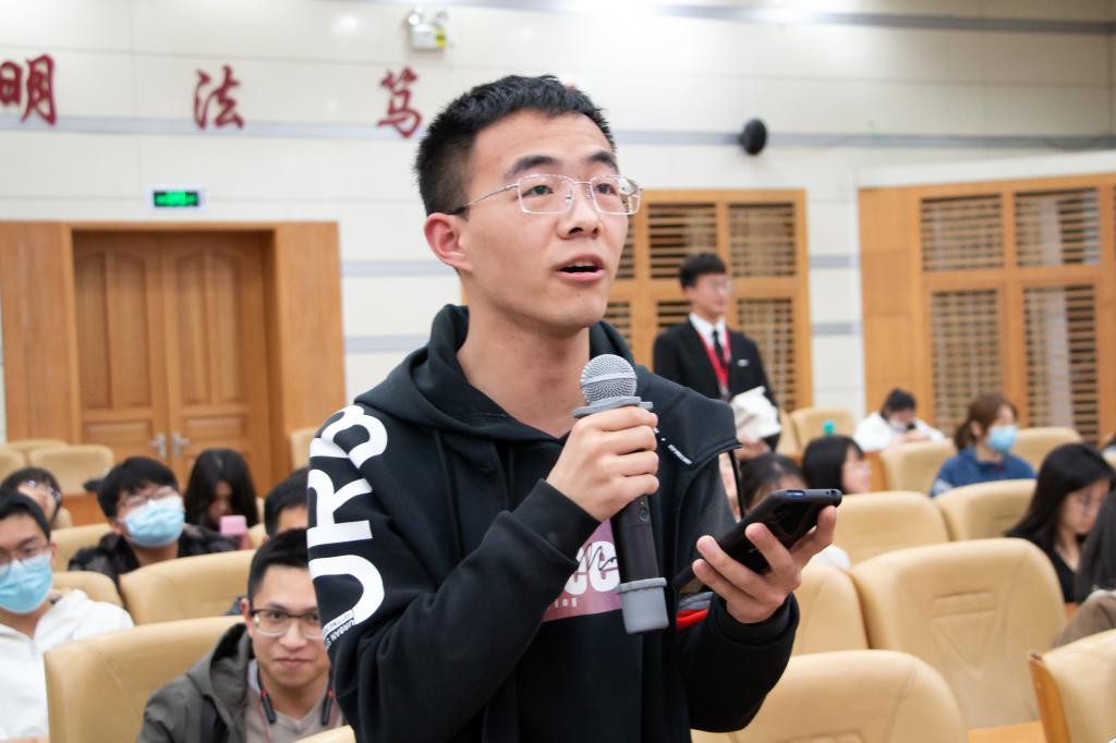紧接着,姜晓敏老师表示,希望在场同学都可以不忘初心并得以通过此次交流会解决自己在学习和工作中的困惑。其后,交流会进入提问环节,在场同学们踊跃发言,陈新宇老师也耐心解惑,气氛一度热烈。陈老师鼓励同学们阅读裁判文书以提高剖析问题的能力,同时他也希望同学们能够通过寻找兴趣与爱好降低对于未来不确定感的焦虑从而在法学学习的过程中行稳致远。最后,校报编辑部主任陈夏红老师也指出了兴趣对于未来学习工作的影响。