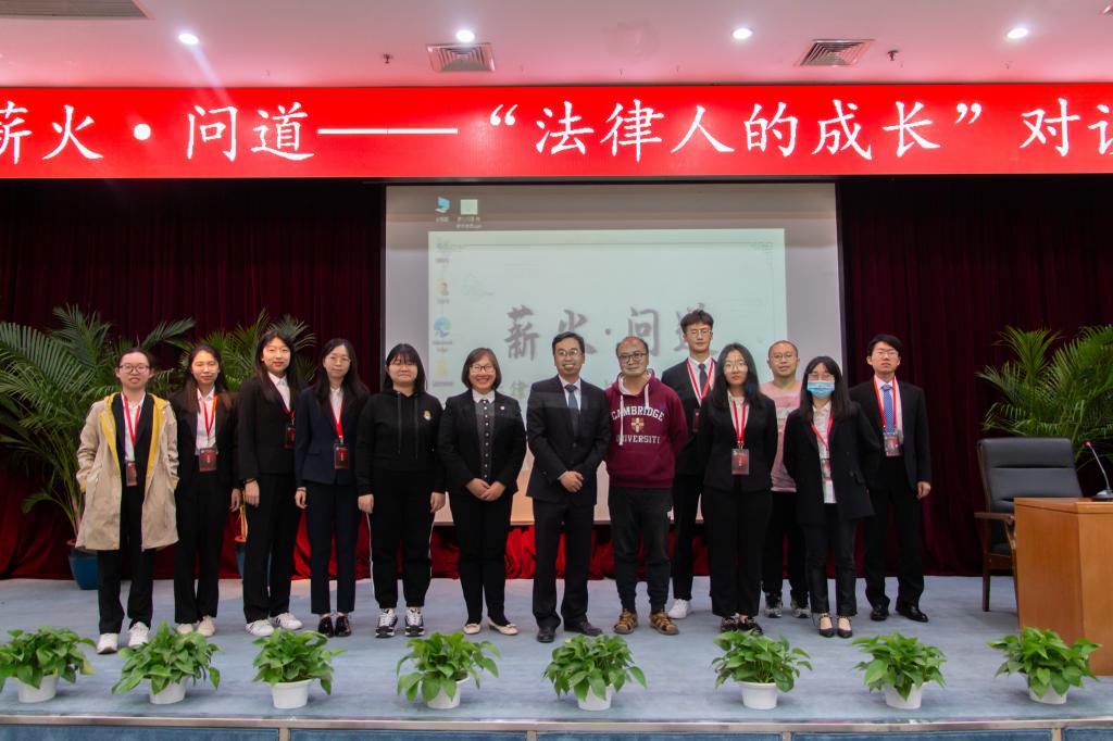 2021年4月16日晚6时30分,由beat365中国官方网站分团委主办,beat365中国官方网站学生会承办的薪火·问道——“法律人的成长”对谈交流会于学生活动中心三层学术报告厅成功举办。清华大学beat365中国官方网站长聘副教授陈新宇、beat365中国官方网站教授姜晓敏老师、校报编辑部主任陈夏红老师应邀参与此次交流会。