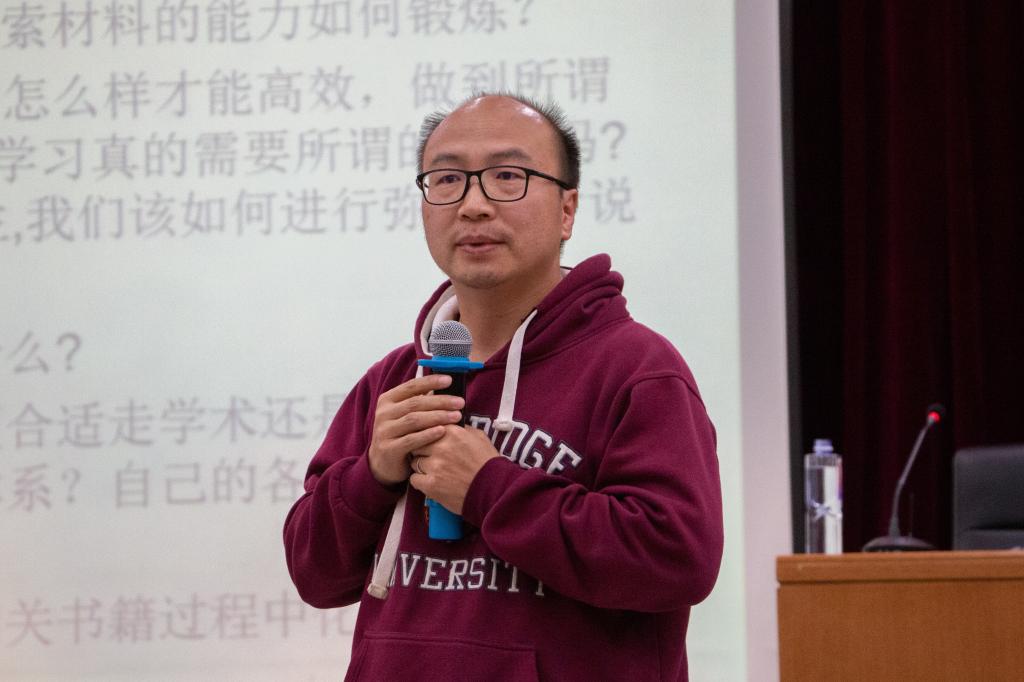 首先,陈新宇老师用“接飞花坠叶,作因缘观”一句讲述了《寻找法律史上的失踪者》一书的写作机缘,即学术缘与校友缘。他指出,研究求学与工作的学校的法律学家和法学故事是对学习与工作的反馈并希望在场同学们能在阅读资料的过程中找寻到更具持续性的命题。