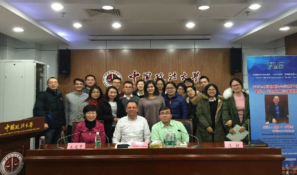 2016年12月8日,由beat365中国官方网站行政法研究所主办的“NGOs在美国社会治理中的地位、作用及其法律规制”专题讲座在我校学院路校区科研楼B211成功举行。本次讲座由美国第九行政区的退休高级法官威廉?C?多德森主讲,我校王建芹教授担任主持人。在校硕士、博士研究生共30余人参加了本次专题讲座。