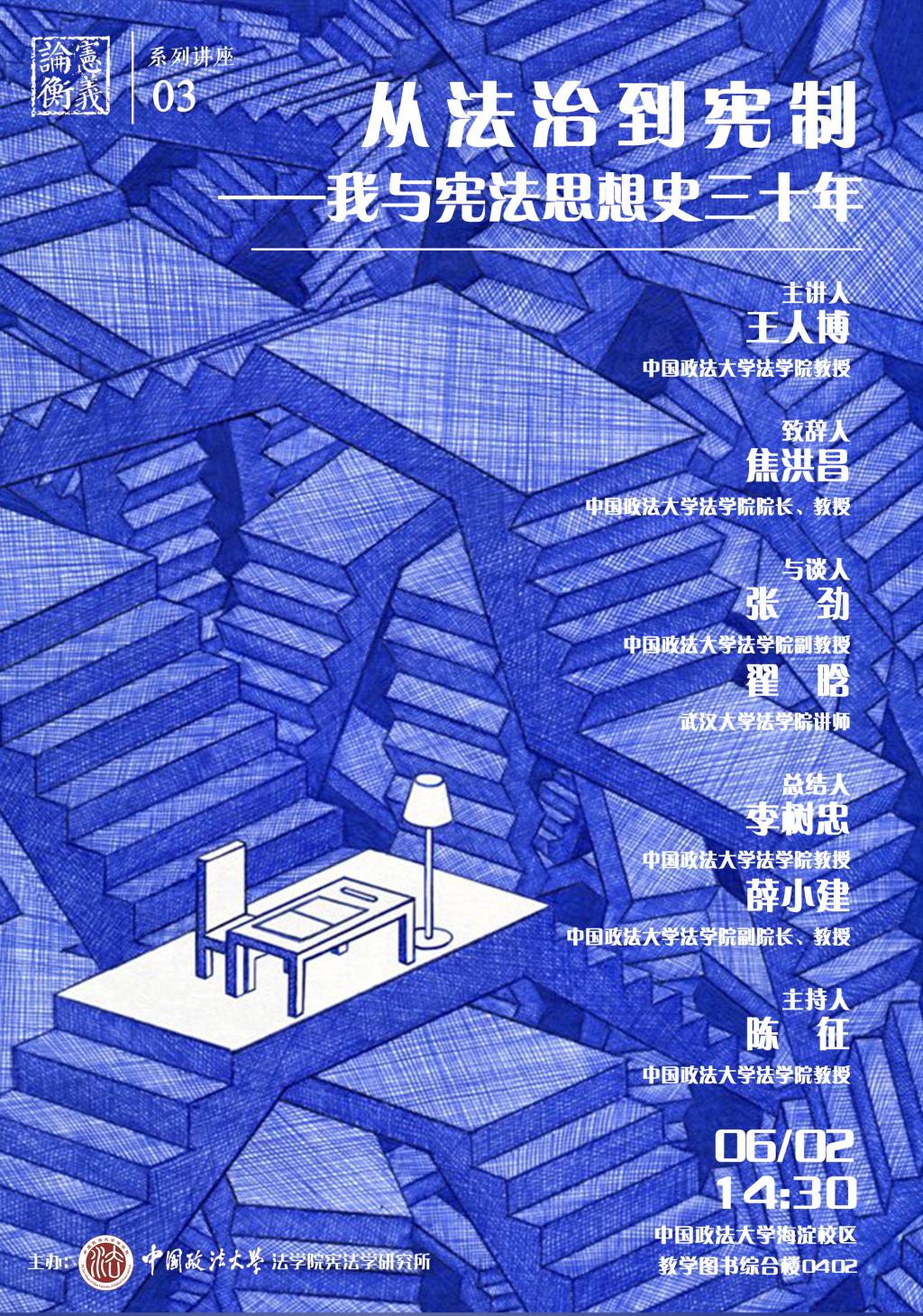 下一条:“道法古今讲堂”第31讲:清代法律史研究和司法文献与档案的利用问题
