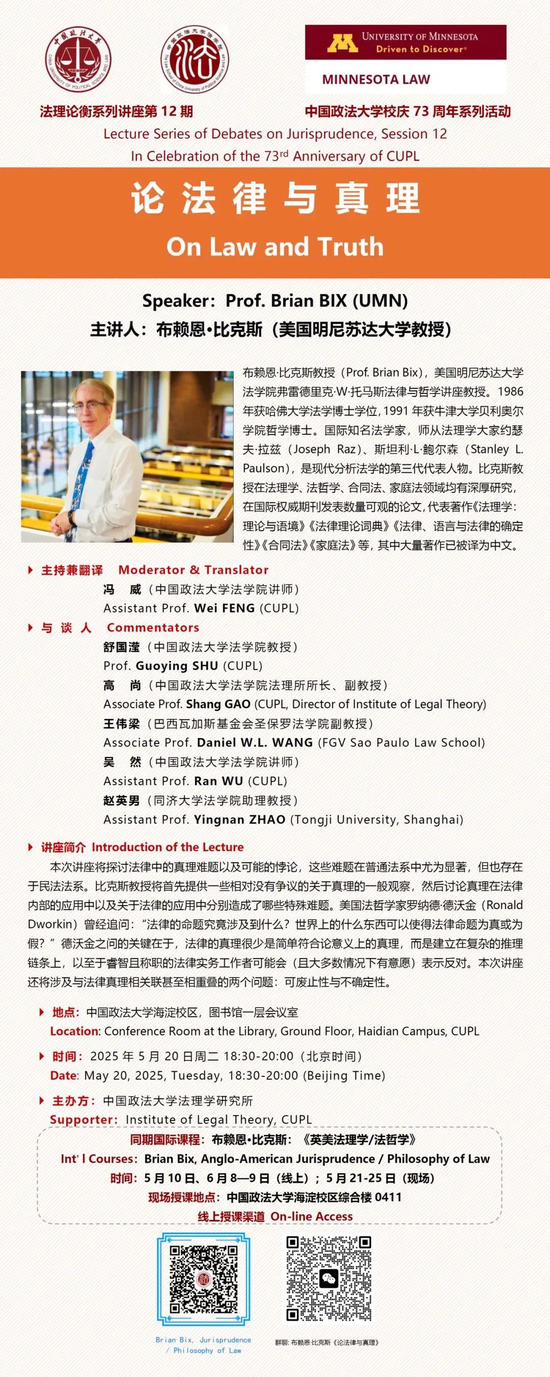 讲人:布赖恩·比克斯教授(Prof. Brian Bix),美国明尼苏达大学beat365中国官方网站弗雷德里克·W·托马斯法律与哲学讲座教授。