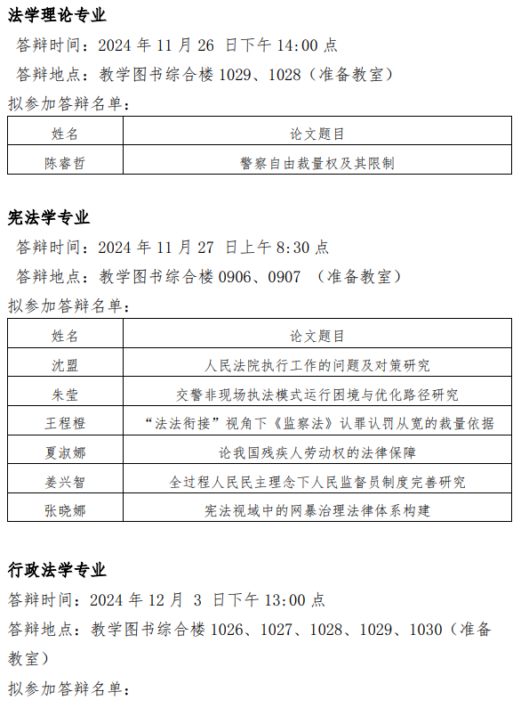 3.答辩安排如遇调整,将第一时间在本网站公布,请所有答辩申请人及时关注本网站通知。
