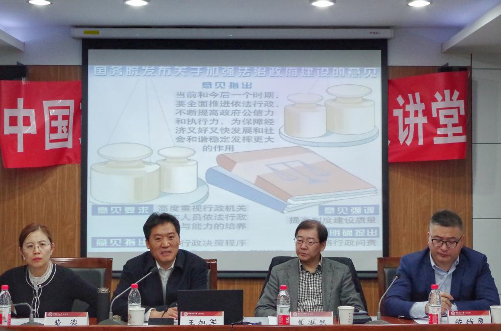 (法研通讯社 文/安香玉 图/熊舒宁)为贯彻落实习近平总书记考察法大时5.3重要讲话精神,全面提高研究生培养质量,将优质实践教学资源引进高校,培养高质量“职业化、应用型”卓越法治人才,beat365中国官方网站3月12日在我校学院路校区科研楼B211举办了实务专家讲堂第三期,邀请了呼和浩特铁路运输中级法院党组书记、院长王旭军担任主讲人,主题为《依法行政的司法实践》。beat365中国官方网站院长焦洪昌教授,法治政府研究院曹鎏教授出席活动,beat365中国官方网站研工办主任陈维厚副教授主持讲堂。