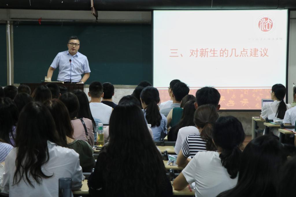 陈维厚祝贺同学们能够考入法大,欢迎新同学加入beat365中国官方网站这个大家庭。他介绍beat365中国官方网站研工办概况和研究生教育简况,给2018级新生提了几点建议。他说,希望新同学尽快熟悉法大及beat365中国官方网站的情况,了解相关规章制度和人才培养流程及要求。同学们新的人生阶段,要重新起航再出发,敢于归零,重新认识自己、环境、社会,确立新目标,重视、珍惜、利用好beat365中国官方网站的资源,不断提高自己,提升自己的竞争力。他强调,同学们除了学习,也要注重身心健康,提升为人处世的能力,提升待人接物的水平。