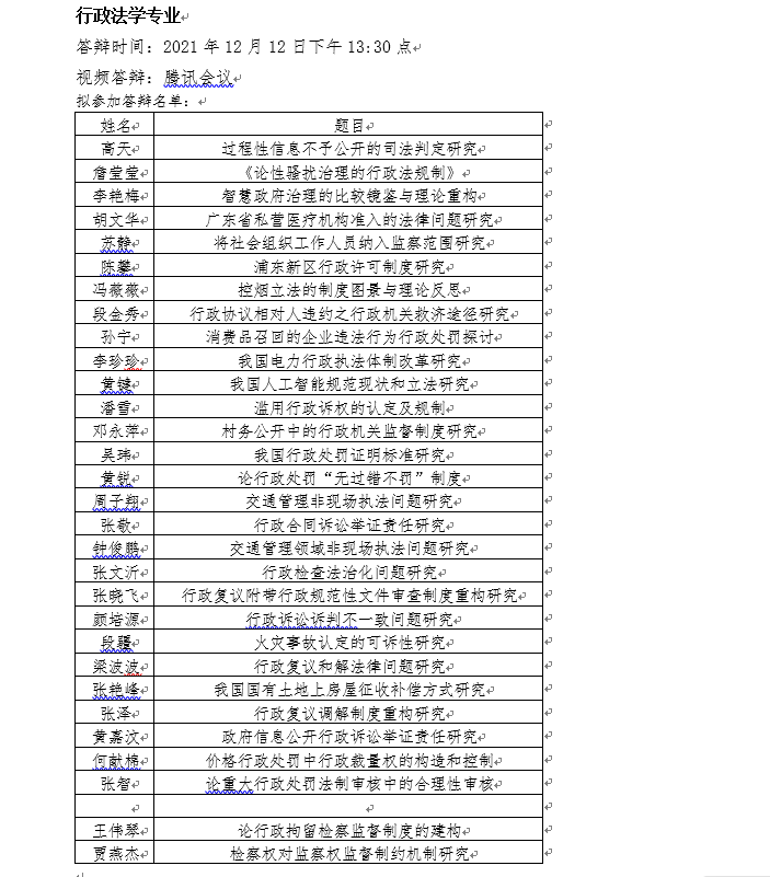 4、上述答辩时间及安排如遇调整,将第一时间在本网站公布,请所有答辩申请人及时关注本网站通知。