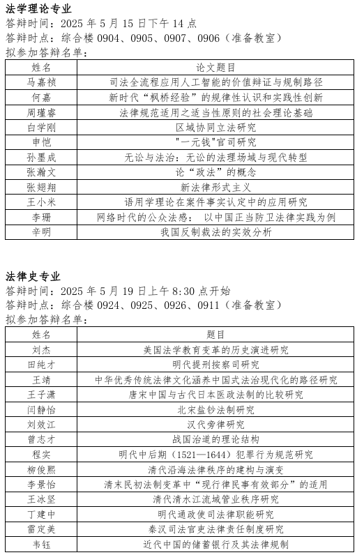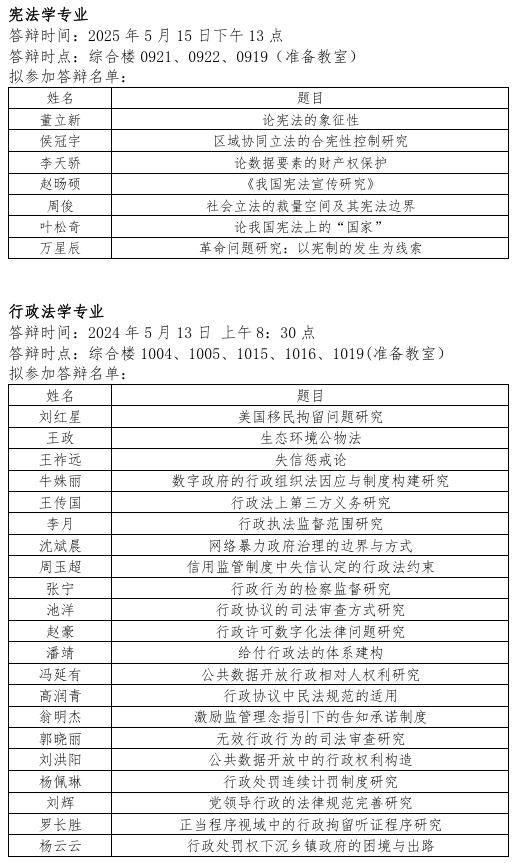 3.答辩安排如遇调整,将第一时间在本网站公布,请所有答辩申请人及时关注本网站通知。