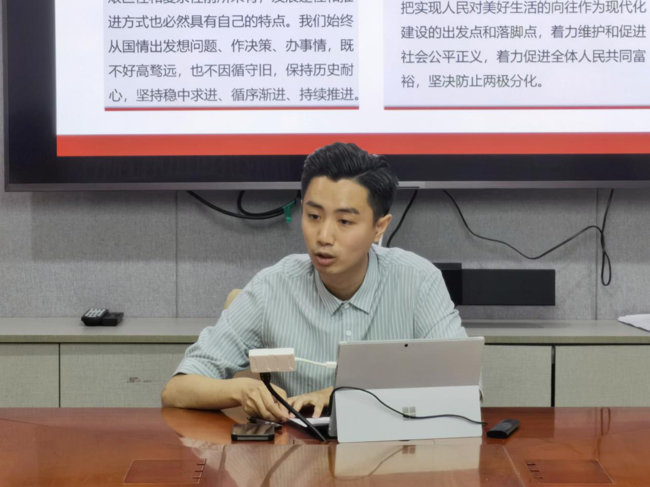 课上,孟祥瑞同志以“坚持和发展新时代“枫桥经验”——立足中国式现代化的实践逻辑”为主题讲授党课。孟祥瑞首先结合党的二十大召开背景,引入“中国式现代化”内涵,认真解读了“中国式现代化”如何走、怎么走的问题。