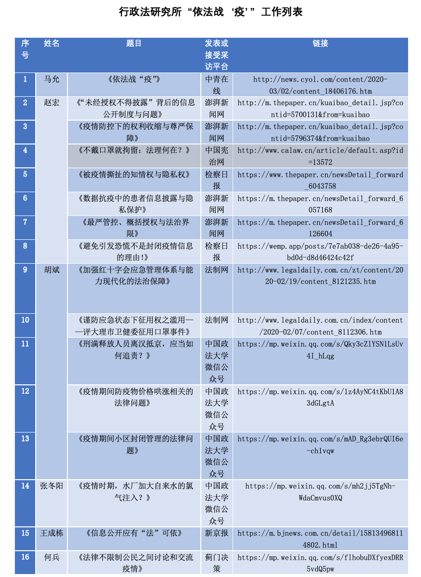 During the period of epidemic prevention and control, teachers of Law school actively carried out a series of special activities of anti-epidemic. By setting up characteristic columns in the WeChat Subscription of Law School, a platform has been set up for legal academic exchanges in related fields during the epidemic prevention and control period. More than 20 professional review articles have been published by teachers of Law School in various newspapers, website and other media, which aroused wide attention and made unremitting efforts to promote epidemic prevention and control.