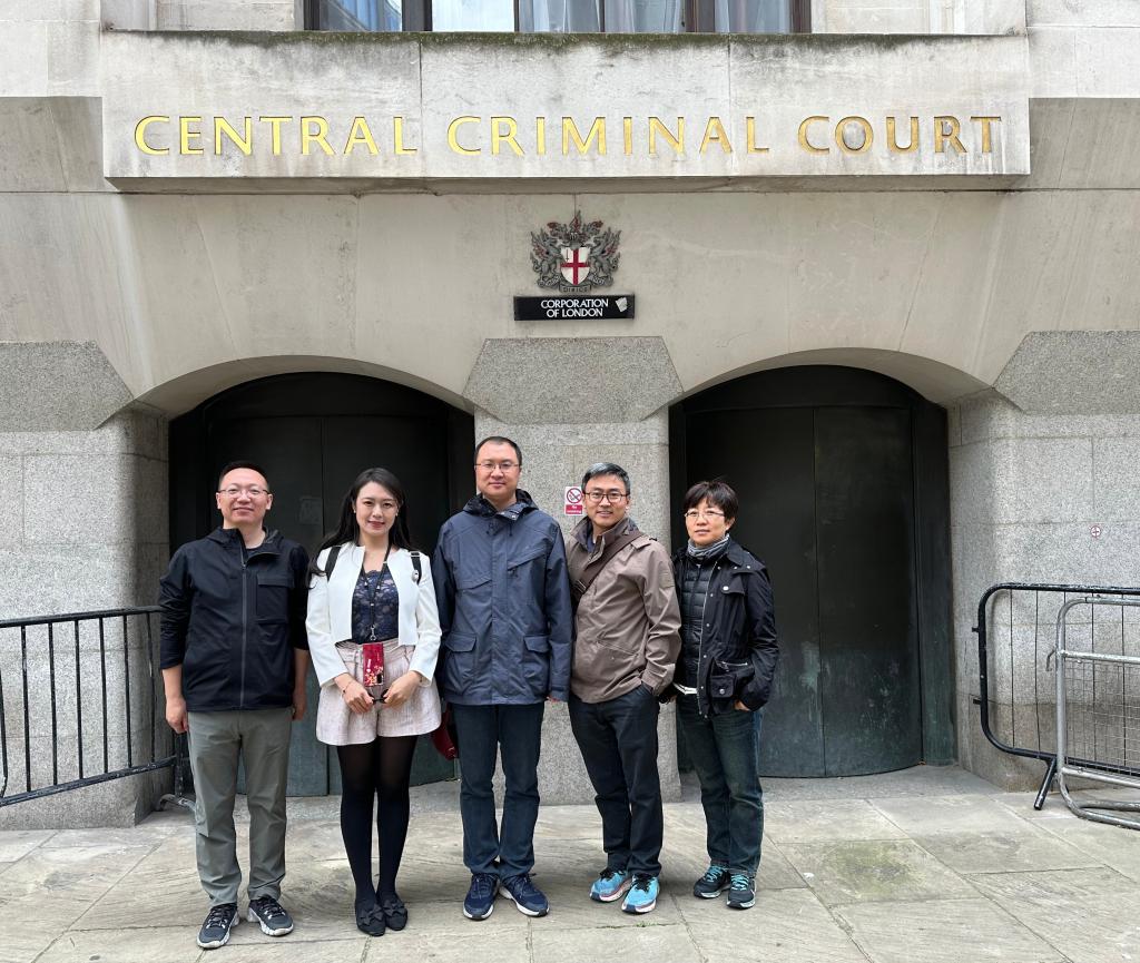 On the morning of 5th June, the delegation was invited to visit Central Criminal Court in the City of London and had an academic exchange. The delegation met with Judge Henry Colthurst and other staff members, who gave an academic report on the latest reform of the UK criminal justice system. Prof Lei Lei gave a presentation on the main initiatives of China's criminal justice reform and commented on Judge Colthurst's report. Prof Zheng Yushuang gave an academic report on the main features and social significance of Chinese criminal legislation. Professor Wang Xinyu made comments and reflections on the latest progress of judicial practice of family law in China. Associate Professor Gao Shang introduced his personal research and had a lively discussion on how the two major legal systems hook up the methods of analogical and deductive reasoning through jurisprudence, so as to achieve the coherence, stability and predictability of law.