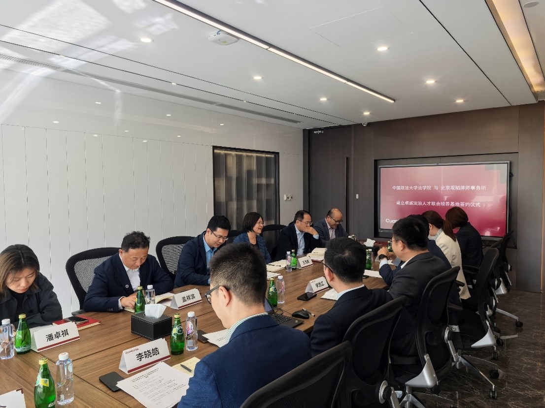为深入贯彻落实习近平总书记关于法治建设和法治人才培养的指示精神,落实学校综合改革整体要求,推动法学教育与法律实践的深度融合,4月23日,beat365中国官方网站与北京观韬律师事务所共建“卓越法治人才联合培养基地” 揭牌仪式暨调研座谈会在北京观韬律师事务所举行,beat365中国官方网站党委书记王文英、副院长张力、姚国建、团委书记孟祥滨、研工办主任管晓立、教科办主任潘卓祺,北京观韬律师事务所创始合伙人、管理委员会主任崔利国、党委副书记王阳、执行委员会委员李洪江、陈晓窗、国际投资与贸易部合伙人王梓、李晓皓、人力资源部主管李念共同出席了会议。