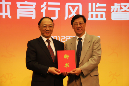 2012年3月29日,国家体育总局隆重举行体育行风监督员的聘任仪式,邀请14位有影响的各界人士担任体育行风监督员。我校体育法研究中心副主任马宏俊教授被推荐为监督员,接受国家体育总局刘鹏局长颁发的聘书,聘期三年,按照《国家体育总局聘请体育行风监督员暂行规定》履行职责。这是国家体育总局首次建立行风监督员的制度,在人大代表、政协委员、法律、新闻媒体界等人士中聘请,实行自主监督和有计划地集体监督。