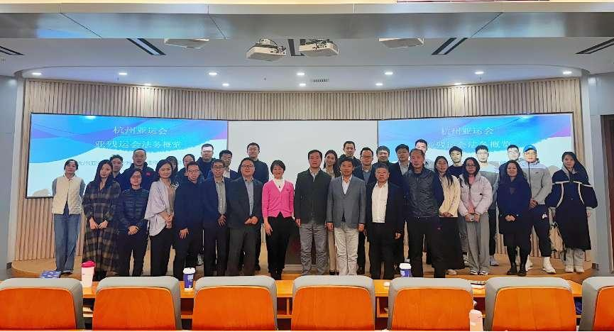 嘉宾上海体育仲裁委员会常务副主任范铭超发言中首先阐述了杭州亚运会成功举办对我国体育发展巨大的现实意义;其次,范主任在发言中结合他所了解的情况,盛赞以张海平处长为代表的亚运会法务工作人员为赛会成功举办做出的杰出贡献。