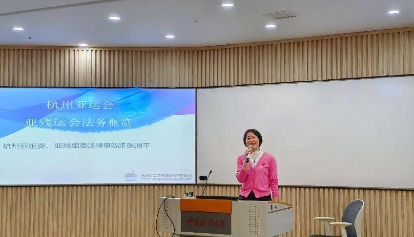 张海平处长首先从杭州亚运会整体入手,分别介绍了亚运会成功举办的重大意义、亚运会筹办历程、亚运会办赛模式等方面。