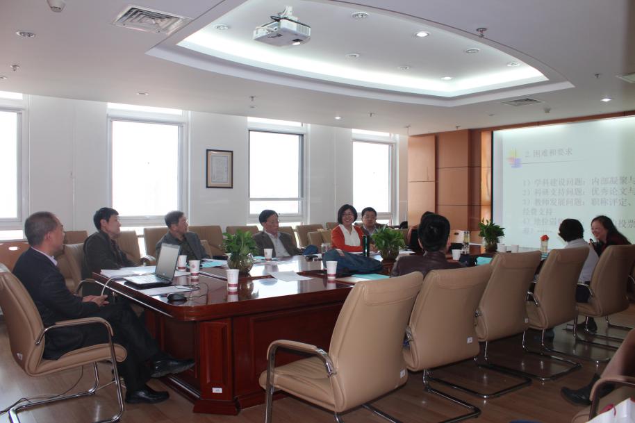 焦洪昌院长表明此次调研活动是为了了解各研究所和教研室“学人、学术、学科”建设的具体情况,以此次本科教学评估为契机,促进学科建设与行政管理相分离的教育教学改革,解读成绩,发现问题和不足,并明确今后的努力方向。